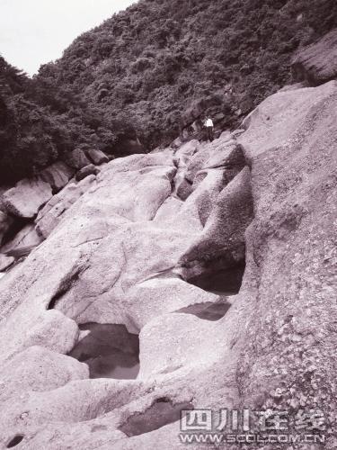 專家推測(cè),冰川運(yùn)動(dòng)在這里形成了一個(gè)很大的冰床,冰水滴水穿石,形成一個(gè)個(gè)圓圓的冰臼。 (張發(fā)政 高志農(nóng))