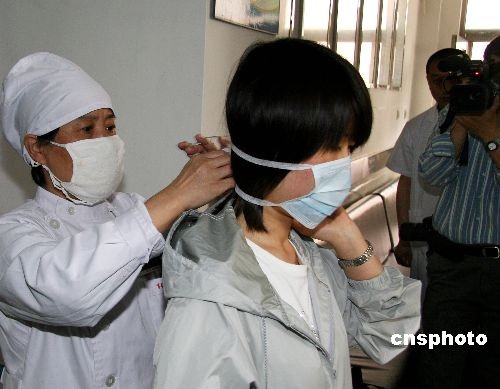 針對中國內(nèi)地相繼出現(xiàn)輸入性甲型H1N1流感確診病例,北京中醫(yī)院5月26日上午組織醫(yī)生護(hù)士進(jìn)行防控甲型H1N1流感實戰(zhàn)演練,模擬一名加拿大留學(xué)生患者在該院就診時出現(xiàn)甲型H1N1流感狀況。演練中,對在診治過程中容易忽視的某些環(huán)節(jié)進(jìn)行了完善。中新社發(fā) 劉震 攝