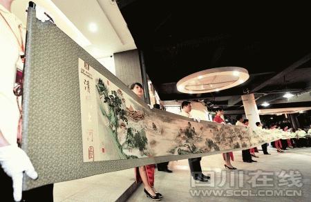 經(jīng)過(guò)37位設(shè)計(jì)師1年半時(shí)間的研發(fā),18位專業(yè)高級(jí)繡師歷時(shí)180多天、巧奪天工的繡制,長(zhǎng)22米的《清明上河圖》十字繡,昨(30日)晚在成都首次公開(kāi)亮相。這幅特殊的十字繡總共使用了116505米繡線,共計(jì)2032611針,重達(dá)20600克,是目前世界上最長(zhǎng)的十字繡藝術(shù)品。18位技師從2008年7月20日起開(kāi)始繡制,至2009年1月20日完工,共繡制人物814人,動(dòng)物83匹,船只29艘,房屋樓宇30多棟,車13輛,轎8頂,橋17座,樹(shù)木180棵,人物往來(lái)衣著不同,神情各異,栩栩如生。作品將在第二屆非物質(zhì)文化遺產(chǎn)節(jié)上正式展出。(譚曦 攝)