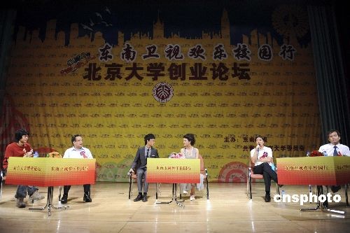 6月2日,北京大學(xué)創(chuàng)業(yè)論壇在北京大學(xué)舉辦,皇明太陽能董事長黃鳴、七匹狼董事長周少雄、福建汽車工業(yè)協(xié)會(huì)會(huì)長凌玉章、3G門戶網(wǎng)總裁張向東,與北京大學(xué)的同學(xué)們共享創(chuàng)業(yè)經(jīng)驗(yàn)。該論壇由東南衛(wèi)視和共青團(tuán)北京大學(xué)委員會(huì)共同主辦。中新社發(fā) 廖攀 攝