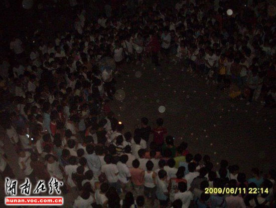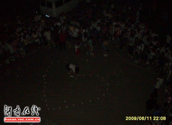 圖片時(shí)間憲攝拍攝于6月11日,發(fā)帖網(wǎng)友“D222”稱,晚上十點(diǎn)左右,山東某高校一男生宿舍樓外,一名女生用蠟燭擺成兩個(gè)串在一起的心型圖案,向該樓一名男生示愛。當(dāng)時(shí)正是下晚自習(xí)時(shí)間,這一大膽舉動(dòng)吸引了上千人圍觀。“此女自始至終神情淡定,慢慢的用蠟燭擺好心形,并不時(shí)地向男宿舍樓上瞻望,還大聲喊男生的名字。樓下樓上的起哄聲、喝彩聲此起彼伏!本W(wǎng)友“D222”在帖子里這樣描述。據(jù)知情網(wǎng)友透露,男生自始至終都沒有露面。