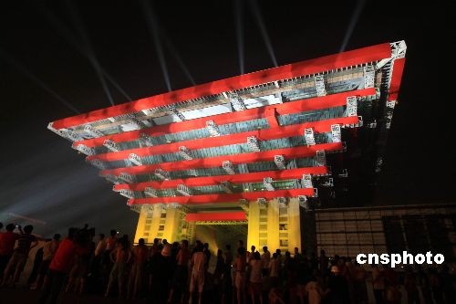 6月22日晚,素有“東方之冠”之稱的上海世博會(huì)中國(guó)館舉行亮燈儀式,在黃浦江畔初綻美麗光芒。中國(guó)館正式亮燈是世博會(huì)園區(qū)電力建設(shè)中一個(gè)重要里程碑,標(biāo)志著世博各項(xiàng)供電工程已全面進(jìn)入沖刺階段。據(jù)悉,今日投運(yùn)的中國(guó)館三十五千伏變電站總?cè)萘繛橐稽c(diǎn)六萬千伏安,投運(yùn)后將直接為兩萬平方米的中國(guó)國(guó)家館、三萬平方米的中國(guó)地區(qū)館以及三千平方米的港澳臺(tái)館提供安全、穩(wěn)定的電力。中新社發(fā) 湯彥俊 攝