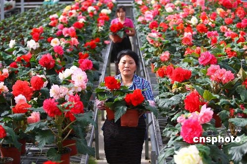 6月22日,在北京草橋楊鎮(zhèn)花卉基地一位花卉工人正在手捧朝鮮“金正日花”從海棠花中走過。據(jù)草橋基地負(fù)責(zé)人介紹“金正日花”屬于海棠科多年生球根花,是日本花卉專家加茂元照經(jīng)過多年研究培育出來的。在1988年送給朝鮮領(lǐng)導(dǎo)人金正日,作為領(lǐng)袖46歲生日的禮物,并以金正日命名。民眾可以在今年9月26日召開的第七屆中國花卉博覽會(huì)上一睹它的芳容。為了確保“金正日花”能在花博會(huì)上如期盛開,楊鎮(zhèn)草橋基地專門從朝鮮聘請(qǐng)了3名專業(yè)技術(shù)人員,他們對(duì)“金正日花”的生長溫度、適度控制非常嚴(yán)格,給花澆水、施肥都要按照嚴(yán)格的標(biāo)準(zhǔn)執(zhí)行。目前,“金正日花”長勢喜人。中新社發(fā) 富田 攝