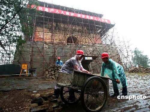 7月17日,已經(jīng)有五百年歷史的明十三陵茂陵啟動(dòng)歷史上規(guī)模最大的修繕,工程投資1200多萬(wàn)元,預(yù)計(jì)明年完工。據(jù)悉,經(jīng)過多年的風(fēng)雨侵蝕,明茂陵已殘破不堪,其主要建筑之一的明樓更是破損嚴(yán)重。此次大修將對(duì)陵門、陵墻、明樓等重點(diǎn)部分進(jìn)行修繕,并本著修舊如舊的原則,按照歷史資料恢復(fù)其原貌,不過修繕僅針對(duì)地上部分進(jìn)行,不涉及地下部分。中新社發(fā) 富田 攝