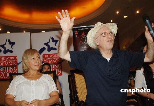 7月20日,2009北京世界魔術(shù)大會(huì)召開發(fā)布會(huì),宣布開幕式晚會(huì)預(yù)演將于7月21日至23日在北京保利劇院拉開帷幕。9位在國內(nèi)外獲得金獎(jiǎng)的魔術(shù)師將亮相本次晚會(huì),獲得中國雜技“金菊獎(jiǎng)”金獎(jiǎng)的農(nóng)民魔術(shù)師汪奇魔、“金菊獎(jiǎng)”全國魔術(shù)比賽金獎(jiǎng)獲得者傅琰東、曾獲“寶豐杯”全國魔術(shù)金獎(jiǎng)的戚原睿、首次展示“水里變魔術(shù)”的鄔鵬程將同臺(tái)表演。圖為將于本次大會(huì)獻(xiàn)藝的西班牙著名魔術(shù)師胡安(右)暢談“魔幻奧秘”。中新社發(fā) 李學(xué)仕 攝