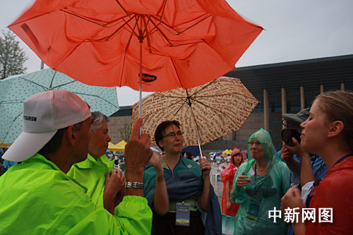 記者在嘉興七一廣場(chǎng)發(fā)現(xiàn),由于下起了大雨,大多數(shù)觀測(cè)者躲到了雨棚中避雨。許多天文愛好者趁機(jī)彼此進(jìn)行交流。也有部分執(zhí)著的天文愛好者堅(jiān)持等在雨中,期待奇跡出現(xiàn)。他們用雨傘護(hù)住了機(jī)器設(shè)備,自己卻冒雨等候在最佳位置。