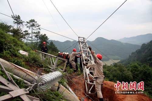 災(zāi)情就是命令,有著“福建電力鐵軍”光榮稱號的福建省第二電力建設(shè)公司快速啟動應(yīng)急預(yù)案,迅速組織160名搶險隊員連夜集結(jié)到搶險現(xiàn)場,搶險物資、設(shè)備、器材、車輛陸續(xù)到達。在搶險隊員頑強拼搏下,用帶電跨越架改造的應(yīng)急鐵塔,替代倒塌的水泥桿塔,完成搶修任務(wù)并送電成功,確保了鷹廈電氣化鐵路荊西牽引變的用電安全。