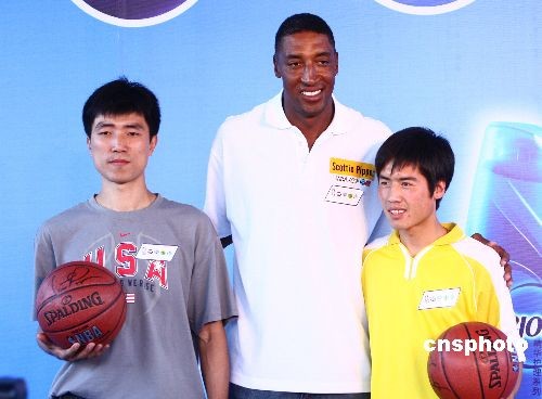6月3日,NBA前公牛隊傳奇巨星、六次NBA總冠軍獲得者斯科特·皮蓬來到北京,為NBA中國與寶潔發(fā)起的“籃球星級體驗賽進社區(qū)活動”啟動助陣;顒蝇F(xiàn)場,皮蓬更是按耐不住與中國籃球愛好者們一起切磋球藝。在接下來的兩個月中,一系列富有挑戰(zhàn)性、趣味性的籃球體驗營與籃球挑戰(zhàn)賽將陸續(xù)在北京,上海,廣州和深圳等十大城市社區(qū)打響。中新社發(fā) 李學仕 攝