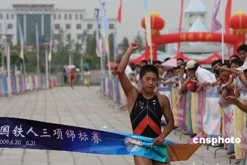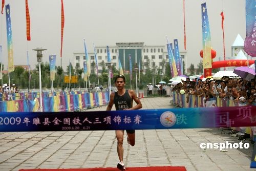 6月20日,由國(guó)家體育局自行車(chē)擊劍運(yùn)動(dòng)管理中心、中國(guó)鐵人三項(xiàng)運(yùn)動(dòng)協(xié)會(huì)、河南省體育局、商丘市人民鄉(xiāng)政府主辦,睢縣人民政府承辦的2009年中國(guó)鐵人三項(xiàng)錦標(biāo)賽在河南睢縣開(kāi)賽。來(lái)自國(guó)內(nèi)的45支代表隊(duì)、600余名運(yùn)動(dòng)員參與角逐。中新社發(fā) 王中舉 攝