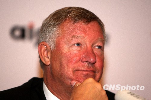 7月25日中午,英超“紅魔”曼聯(lián)一行從韓國(guó)飛抵亞洲商業(yè)之旅的最后一站——杭州市,全國(guó)各地曼聯(lián)球迷從當(dāng)日清晨開(kāi)始將曼聯(lián)下榻的杭州凱悅酒店包圍得水泄不通。7月26日晚,曼聯(lián)將在杭州與當(dāng)?shù)氐闹谐蜿?duì)“浙江綠城”比賽。圖為抵達(dá)酒店后,曼聯(lián)主教練弗格森爵士出席新聞發(fā)布會(huì),對(duì)亞洲之旅深表滿意。中新社發(fā) 任晨鳴 攝