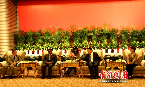 6月25日晚,中共中央對外聯(lián)絡(luò)部副部長李進軍(右二)、中共揚州市委書記王燕文(右一)在揚州迎賓館會見參加26日由中共中央對外聯(lián)絡(luò)部與中共揚州市委、揚州市人民政府共同主辦的中國與海灣阿拉伯國家石化產(chǎn)業(yè)合作論壇的海合會六成員國阿拉伯聯(lián)合酋長國、阿曼、巴林、卡塔爾、科威特和沙特阿拉伯的駐華大使或臨時代辦,以及全球最大的石油公司沙特阿美公司、沙特基礎(chǔ)工業(yè)公司、沙特扎米爾集團公司、阿聯(lián)酋國家石油公司、阿聯(lián)酋博祿石化公司、卡塔爾天然氣公司等多家海灣阿拉伯國家石化企業(yè)高層領(lǐng)導(dǎo)。圖左二為阿曼蘇丹國駐華大使阿卜杜拉·薩阿迪,左一為阿聯(lián)酋駐華大使歐麥爾·白伊塔爾。