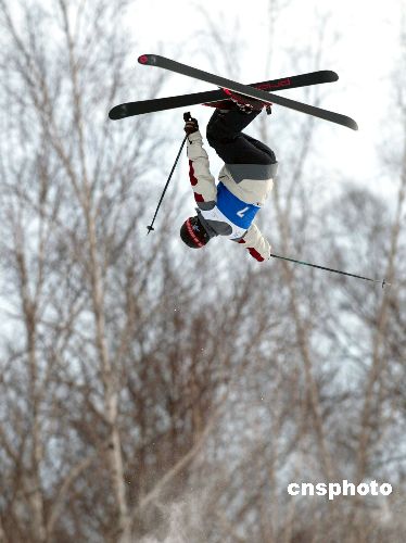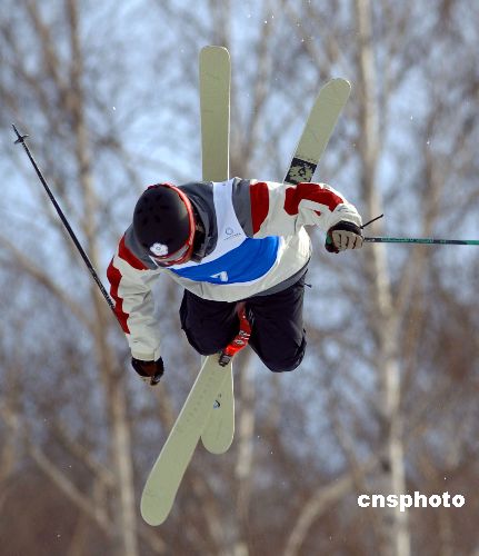 | 2月1日,中國臺北選手詹姆斯·楊在參加第6屆亞冬會自由式滑雪空中技巧的比賽中用背身滑行的“技術”讓在場的裁判和組委會感到頭疼,以至于在他第二跳前,國際雪聯(lián)技術代表向他再三確認,而日本隊的外籍教練貝呂默也專門跑來幫助他確認技術動作。他一人甚至參加男子單板、高山滑雪和自由式滑雪三個分項的比賽,這是冰雪界是很難想像的!拔沂莵硐硎芑┑臉啡さ,”詹姆斯·楊說,“其實這些項目我沒怎么訓練過,不過能參加比賽就值得高興了!敝行律绨l(fā) 杜洋 攝