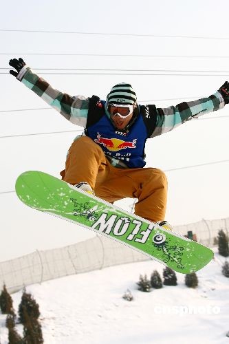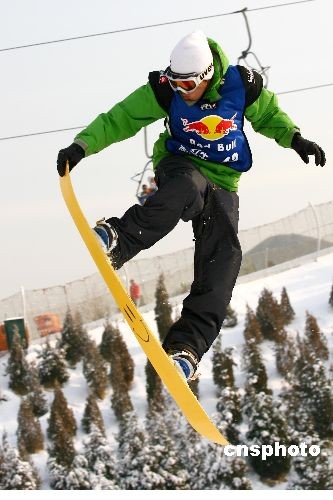 12月28日,第七屆紅牛南山滑雪公開賽在北京南山滑雪場展開資格爭奪,中國近40位單板滑雪高手激烈角逐,最后將有三位勝出的選手在明年一月與世界頂級選手一較高下。中新社發(fā) 富田 攝
