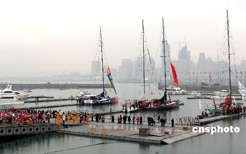2月14日,2008-2009年沃爾沃環(huán)球帆船賽青島站舉行起航儀式。據(jù)悉,為了讓民眾充分領略沃爾沃環(huán)球帆船賽的魅力,青島站組委會向公眾免費開放奧帆中心,吸引了大量游客。截至當日,青島奧帆中心共接待海內(nèi)外觀眾四十余萬人次。沃爾沃環(huán)球帆船賽是繼奧帆賽、殘奧帆賽后,青島承辦的又一項全球頂級專業(yè)帆船賽事,也是中國首次在冬季寒冷氣候下在北方水域承辦的帆船賽事。中新社發(fā) 衛(wèi)卿 攝