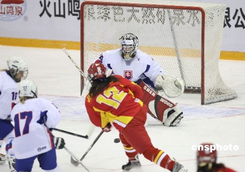 2月18日,第24屆國際大學(xué)生冬季運(yùn)動(dòng)會在哈爾濱冰球館拉開戰(zhàn)幕。當(dāng)日大冬會女子冰球比賽將在哈爾濱冰球館進(jìn)行3場比賽,首場斯洛伐克隊(duì)(白)對中國隊(duì)(紅),比賽進(jìn)行到10時(shí)20分中國隊(duì)進(jìn)首球。中新社發(fā) 姚庭山 攝