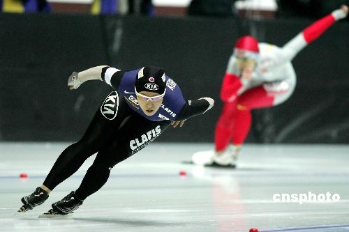 2月19日,第24屆大學(xué)生冬季運(yùn)動(dòng)會(huì)進(jìn)入第二天的比賽,速度滑冰女子500米項(xiàng)目決出本屆大冬會(huì)首枚金牌,韓國(guó)選手李相花(左)以38秒16的成績(jī)獲得第一名,同時(shí)刷新了由她自己保持的大冬會(huì)記錄,中國(guó)選手于靜位列第二,另一名中國(guó)選手張爽取得銅牌。中新社發(fā) 富田 攝