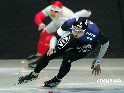 2月19日,世界大學(xué)生冬季運動會在結(jié)束女子首金爭奪后,男子500米速度滑冰的比賽也產(chǎn)生了金牌。韓國選手選手李康爽以兩輪69秒82的成績問鼎冠軍,為韓國隊再添一金。中國隊賽前對金牌志在必得的于鳳桐落后0.05秒,屈居亞軍,銅牌則最終歸屬于韓國選手毛太范,成績?yōu)?0秒53。中新社發(fā) 富田 攝