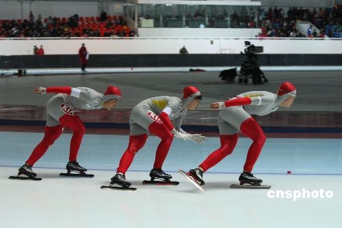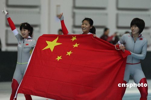 2月26日,大冬會速度滑冰女子團(tuán)體追逐賽,中國隊(duì)以3分07秒38獲得冠軍。中新社發(fā) 王忠言 攝