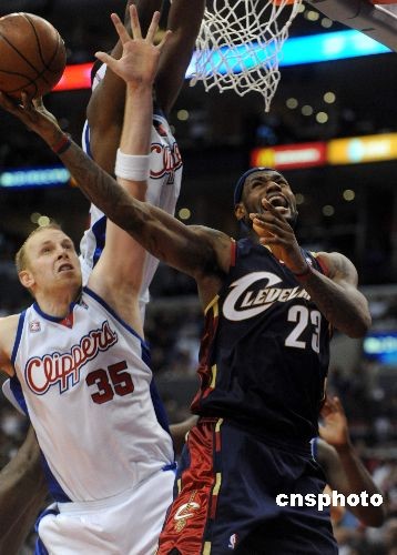 當(dāng)?shù)貢r間三月十日晚,NBA東部賽區(qū)暫列第一的克利夫蘭騎士隊在客場上演大逆轉(zhuǎn),在落后十九分的情況下,最終以八十七比八十三戰(zhàn)勝洛杉磯快船隊。騎士隊球星勒布朗·詹姆斯打出“三雙”,貢獻三十二分、十三個籃板和十一次助攻。中新社發(fā) 張煒 攝