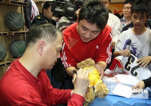 3月22日,中南六省首家NBA品牌店在長(zhǎng)沙開業(yè),它將為NBA迷們帶來各類原裝的NBA產(chǎn)品。當(dāng)天在店內(nèi)購(gòu)買商品的顧客得到籃球顧問張衛(wèi)平的親筆簽名和籃球技術(shù)指導(dǎo)。中新社發(fā) 鄧霞 攝