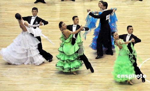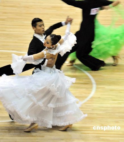 3月28日,全民健身大型活動(dòng)“激情探戈、柔美倫巴”暨全國(guó)萬(wàn)人體育舞蹈大賽啟動(dòng)儀式在浙江紹興舉行。當(dāng)日,來(lái)自全國(guó)7個(gè)省市33支代表隊(duì)的900余名選手在紹興文理學(xué)院體育館參加了2009年全國(guó)部分城市體育舞蹈公開(kāi)賽分賽區(qū)預(yù)決賽。中新社發(fā) 袁云 攝