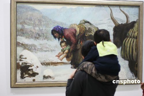 4月5日,武漢市民在湖北省藝術(shù)館欣賞中國(guó)美術(shù)館館藏精品!伴L(zhǎng)風(fēng)萬(wàn)里西部情——中國(guó)美術(shù)館館藏精品展”正在湖北省藝術(shù)館展出,114件國(guó)家級(jí)美術(shù)藏品首次亮相武漢。該展由湖北省藝術(shù)館與中國(guó)美術(shù)館共同主辦,是文化部支持西部的重要文化活動(dòng)之一。該展此前曾在陜西、上海、廈門展出,武漢的展覽到4月26日結(jié)束。中新社發(fā) 孫新明 攝