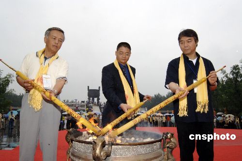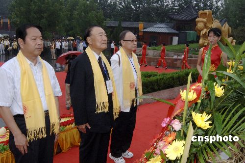 臺(tái)灣前“內(nèi)政部”常務(wù)次長(zhǎng)、京華城董事長(zhǎng)李本仁先生(中)和《時(shí)報(bào)周刊》榮譽(yù)董事長(zhǎng)簡(jiǎn)志信(右)代表臺(tái)灣嘉賓祭拜。