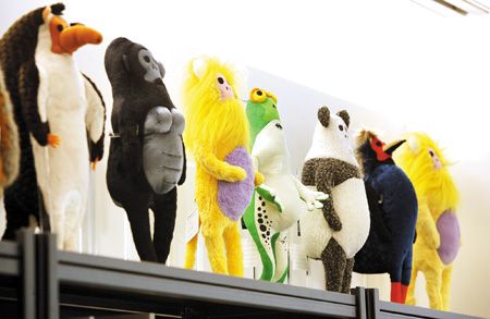 來自高雄的盧袗云與莊瑞豪,兩個年齡相仿,因為熱愛藝術(shù)赴日留學(xué),回臺灣共同創(chuàng)辦“兩個八月”創(chuàng)意設(shè)計公司。一年多來,兩位大男生以一針一線縫出48只動物布偶,做成“沒有生命的動物園”,這些五顏六色布偶的表情與一般可愛布偶很不同,看起來已經(jīng)沒有生命。盧云袗說,“這些布偶主要是教育小朋友,要愛地球,否則可愛動物會面臨死亡威脅。”