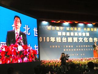 據(jù)報(bào)道,廣西團(tuán)來(lái)臺(tái)進(jìn)行經(jīng)貿(mào)文化交流,今日在圓山飯店舉行“2010年桂臺(tái)經(jīng)貿(mào)文化合作論壇”。郭聲琨表示,簽署ECFA是兩岸關(guān)系上的里程碑,有助于提升兩岸競(jìng)爭(zhēng)力,因此,他希望兩岸未來(lái)能在產(chǎn)業(yè)、市場(chǎng)和文化上進(jìn)一步開(kāi)拓和交流。