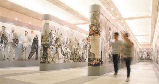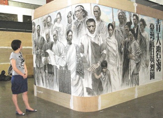 據(jù)報道,這幅名為《浩氣長流》的巨畫,由六個部分組成,分成《故國》、《青天碧!、《山河歲月》、《血肉長城》、《精神堡壘》、《信義和平》和《祈禱》,創(chuàng)下史上最長畫作的紀(jì)錄。