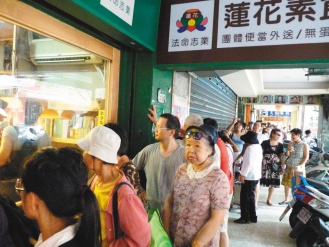 來自北市景美的吳姓婦人說,從上午11時開始排隊到下午2時才排到,雖然在騎樓下排了這么久但相當(dāng)值得,自己全家都吃素,相當(dāng)感謝老板和這位神秘客的愛心。