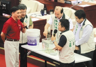 藍營議員秦儷舫等人則拿出章魚玩偶,諷刺綠營不是“章魚哥”而是“烏賊弟”,只會一天到晚吐墨汁、抹黑市政成果。