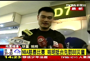 姚明這次來臺(tái)是參加“2010姚基金慈善之旅”的活動(dòng),不過一抵達(dá)臺(tái)灣,他將立刻搭乘高鐵,前往高雄和八八風(fēng)災(zāi)的受災(zāi)戶學(xué)童見面。