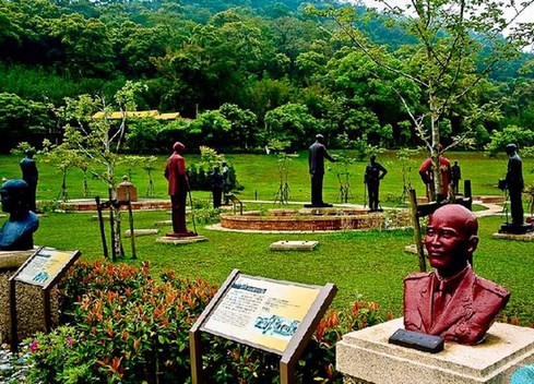 教授告訴我,這個(gè)雕像群落多達(dá)兩百余座蔣介石雕像,因上世紀(jì)90年代后期“去蔣化”運(yùn)動(dòng),各地矗立的銅像紛紛拆除,面臨回爐煉銅的命運(yùn)。慈湖所在的桃園縣當(dāng)時(shí)正值“藍(lán)營(yíng)”執(zhí)政,于是將各地拆除的銅像收來,選出其中藝術(shù)水準(zhǔn)較高者,建成雕塑群。