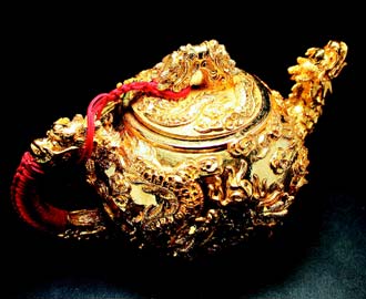 報道中還提及,除了島外置房產(chǎn),也有“立委”珍藏有價品,國民黨“立委”徐耀昌現(xiàn)金、存款、有價證券三項申報欄都空白,卻擁有一具十多年前購買,當時價值60萬元,由曾得過“文建會”傳統(tǒng)工藝獎的金雕名師鄭應諧精雕的金茶壺。民進黨“立委”王幸男的夫人擁有臺灣銀行黃金撲滿,這只黃金撲滿重量約204克,價值24萬余元。