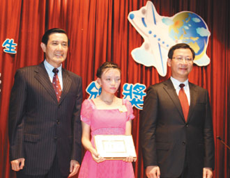 該獎(jiǎng)項(xiàng)今年頒發(fā)新臺幣200萬元獎(jiǎng)學(xué)金,共150位學(xué)生獲獎(jiǎng),由縣長吳志揚(yáng)主持,馬英九頒獎(jiǎng)合照。