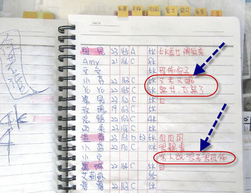 客人對(duì)應(yīng)召女的評(píng)語(yǔ)也五花八門(mén),包括“長(zhǎng)得像徐若瑄、楊丞琳”,還有“小姐”被寫(xiě)有體臭、脾氣差、又老又丑等;其中一名23歲的專(zhuān)柜“小姐”被嫌太老,員警看了哭笑不得。