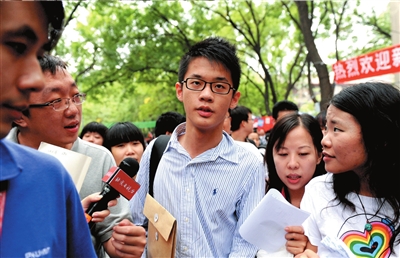 昨天上午,李戡無疑是北大今年的新生中最被關(guān)注的一個(gè)。數(shù)十名記者把李戡圍得寸步難行,對于這樣的架勢,李戡表示已經(jīng)在意料之中,但是他希望從今天開始自己的生活可以恢復(fù)平靜。