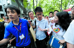 昨日北大五四路上迎來了一群新鮮的面孔,而李戡絕對是其中的“超級明星”。早上8點,兩岸三地的記者就在經(jīng)濟學院報名處“蹲點”。10點左右,身材清瘦、穿著白底黑條紋襯衫的李戡終于現(xiàn)身,面對媒體的圍追堵截,他應對大方得體,承認上北大是受父親的影響。前來送行的母親則希望媒體的關注只限于近幾日,開學后能讓孩子平靜安心地學習。