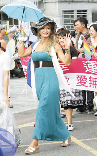 男“同志”小莫(化名)打扮成美麗的儀隊隊員,走在隊伍前端,背后還大方寫著:“I'm Gay,and you?”。他說,因為軍隊、儀隊是象征,而“同志”的權益長期受到漠視,也需要努力捍衛(wèi)。高頭大馬的喬許(Josh)則男扮女裝成歌手凱莉•米洛。他表示,是因為凱莉•米洛很支持“同志”運動。