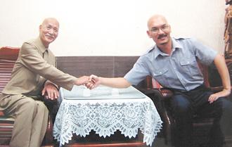 中新網(wǎng)9月21日電 據(jù)臺灣《聯(lián)合報》報道,桃園市民代表會職員李彥霆留著胡須,理個大光頭,朋友形容他很像年輕時的蔣介石,連住花蓮、常扮演蔣介石的李登科都去找他合照。