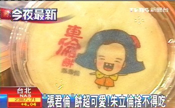 朱立倫變身可愛造型的豆沙餅,一下是“OPEN倫”,一下又是“乖乖倫”,還帶抹可愛的小腮紅,還有“面速立達(dá)倫”和“兩撇胡子的波爾倫”,選戰(zhàn)秘密武器限量“車倫餅”首度開賣,大伙搶翻了。