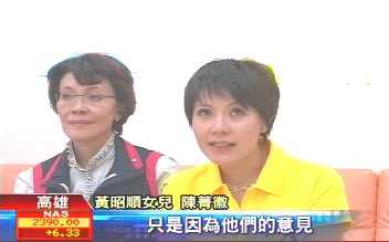 知道支持者車子被砸壞,黃昭順立刻召開記者會,譴責暴力,黃昭順的女兒陳菁徽替母親抱不平,委屈地流下眼淚。陳菁徽說道:“我不希望我們第二代、第三代,生活在這個城市里感到恐懼,只是因為他們的意見,跟別人都不一樣!