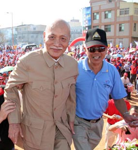 大臺中市議員參選人今天紛紛成立競選總部,國民黨的市長參選人胡志強及民進黨的市長參選人蘇嘉全,都應邀擔任同黨籍議員參選人成立競選總部的貴賓,讓兩人緊湊趕場,滿足大家的需求,也有效拉抬競選總部的熱鬧程度。
