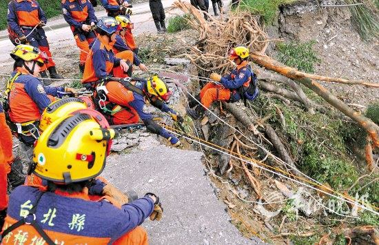 據(jù)悉,23日上午,臺灣兩支搜救隊帶著搜救犬持續(xù)在蘇花公路搜尋。在蘇花公路114.5公里處的邊坡,發(fā)現(xiàn)疑似創(chuàng)意旅行社大巴的綠色保險杠,遂派人下去搜索,搜索人員吊繩下去查看,又發(fā)現(xiàn)兩個輪胎。創(chuàng)意旅行社大巴司機郭銘麟的女兒和兒子抵達事故現(xiàn)場。