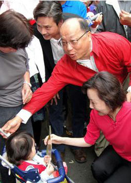 中新網(wǎng)11月11日電 據(jù)“中央社”報(bào)道,國民黨臺中市長候選人胡志強(qiáng)11日起請假投入選舉,首場活動即到臺中市北屯區(qū)金谷市場拜票,國民黨秘書長金溥聰特別陪同,市場內(nèi)“凍蒜(當(dāng)選)”聲不絕于耳。