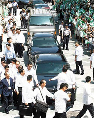 “卸任正副領導人禮遇條例”原本規(guī)定,卸任者每月致送禮遇金25萬元,至于供聘用處理事務人員、司機,及辦公室所需費用,則依第一年800萬,以后每年金額逐年遞減100萬,最低每年500萬直到禮遇期限屆滿為止。當局“國安局”則另提供8到12名隨扈,只維護其在島內(nèi)的安全。