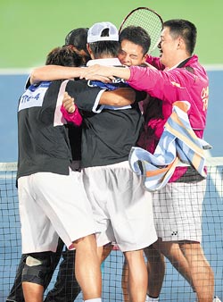 由于中華臺(tái)北代表團(tuán)在一九九○和二○○八年先后在北京舉行的亞運(yùn)、奧運(yùn)會(huì),都以零金作收,此次亞運(yùn)再次前來(lái)對(duì)岸參賽,不免令人憂心,代表團(tuán)可不要患了“奪金恐懼癥”。昨天中華臺(tái)北軟式網(wǎng)球男子隊(duì)的這一金,突破了在大陸參賽的“零金障礙”。
