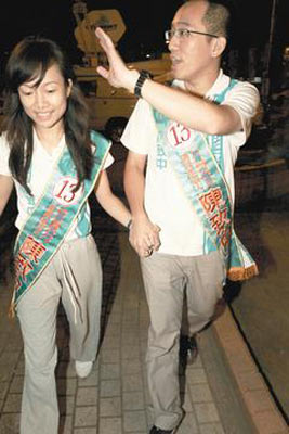 檢方昨天出示陳致中駕車出入“人文首璽”的監(jiān)視錄像帶,指陳致中用黃睿靚手機打召妓電話。晚上七時二十分,陳致中和黃睿靚結(jié)束掃街行程,回到競選總部,下車步行短短路程中,兩人十指緊扣,陳致中擔心黃睿靚被SNG車的電纜線絆倒,輕聲頻喊“小心、小心”。