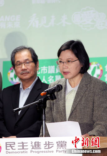 中新網(wǎng)11月27日電 臺灣“五都”市長選舉選舉初步結(jié)果27日晚間陸續(xù)揭曉。民進(jìn)黨新北市長參選人蔡英文晚間承認(rèn)敗選。聽見蔡英文的“落選感言”,臺下民眾高喊“選總統(tǒng)”。